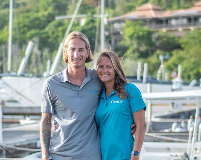 This extensively trained and dynamic duo — Captain/Chef Joseph and First Mate/Dive Instructor Britta — invite you aboard Grace to experience “The Grand Madame” of the islands. With her luxurious accommodations, exceptional dining, and unmatched water adventures, Grace offers the ultimate trifecta: World-Class Sailing, Superb Cuisine, and Unforgettable Exploration.