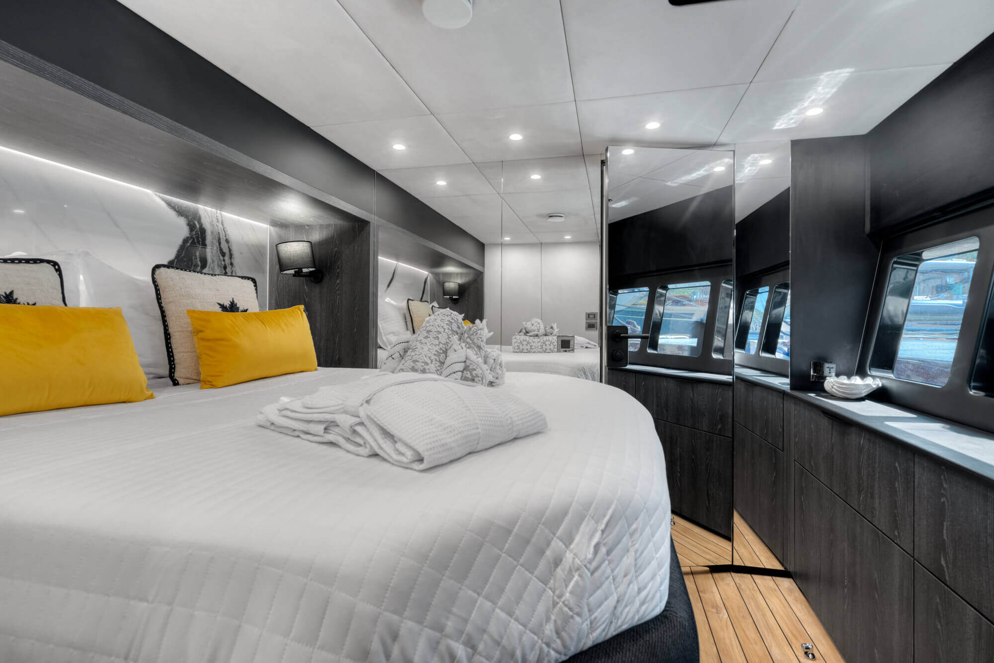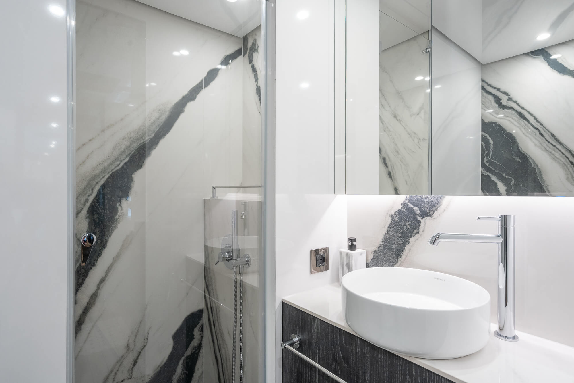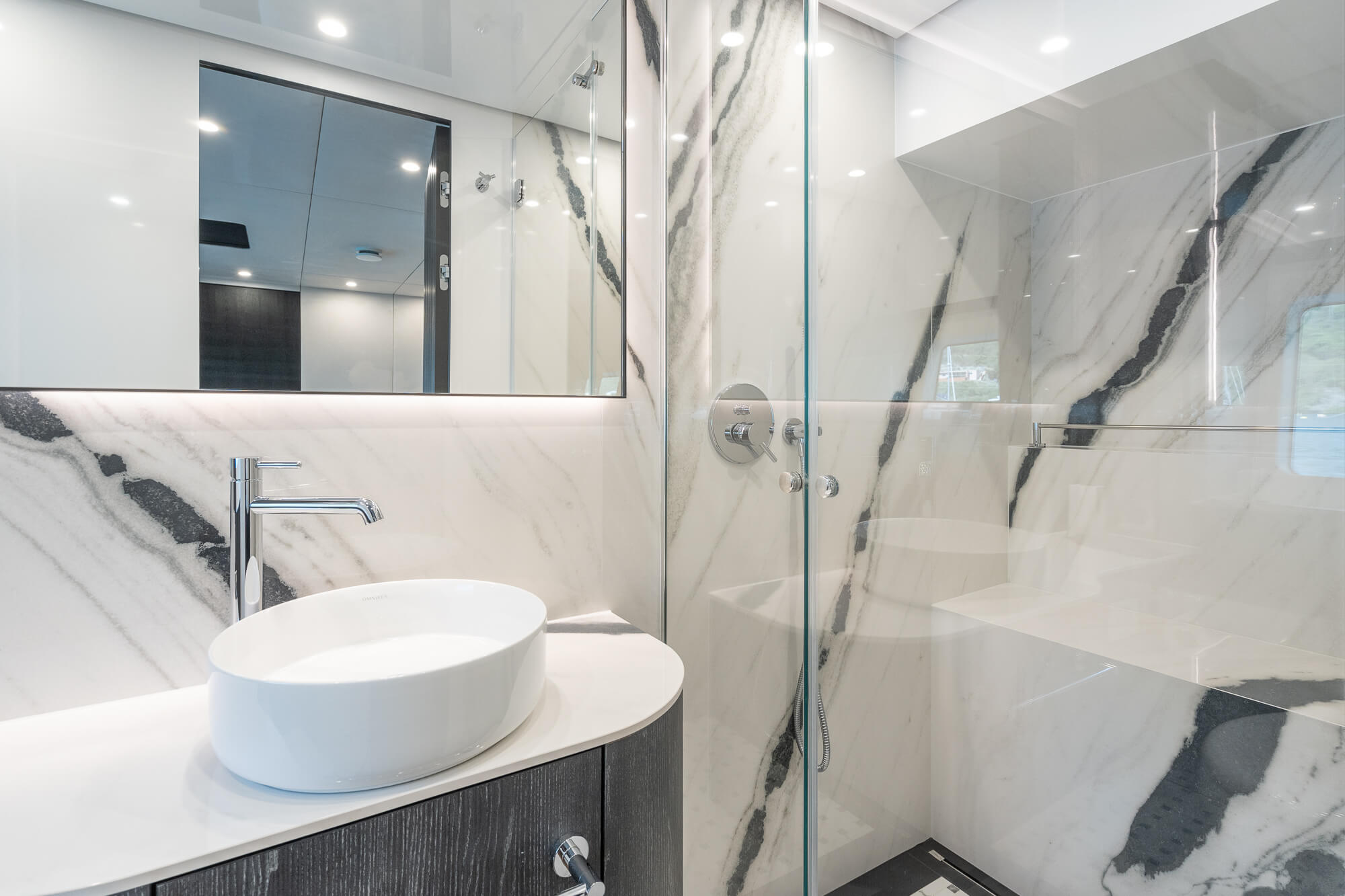 The interior of the MOON 6ty is a true feast for the senses—spacious, modern, and fully tailored to the owner’s individual preferences. The selection of materials, including natural stone, sintered surfaces, and elegant upholstery, ensures that every part of the yacht forms a cohesive, luxurious whole. Thoughtful spatial arrangement, with attention to every detail, makes the MOON 6ty the perfect space for top-tier relaxation, where each element is unique and designed with passion.