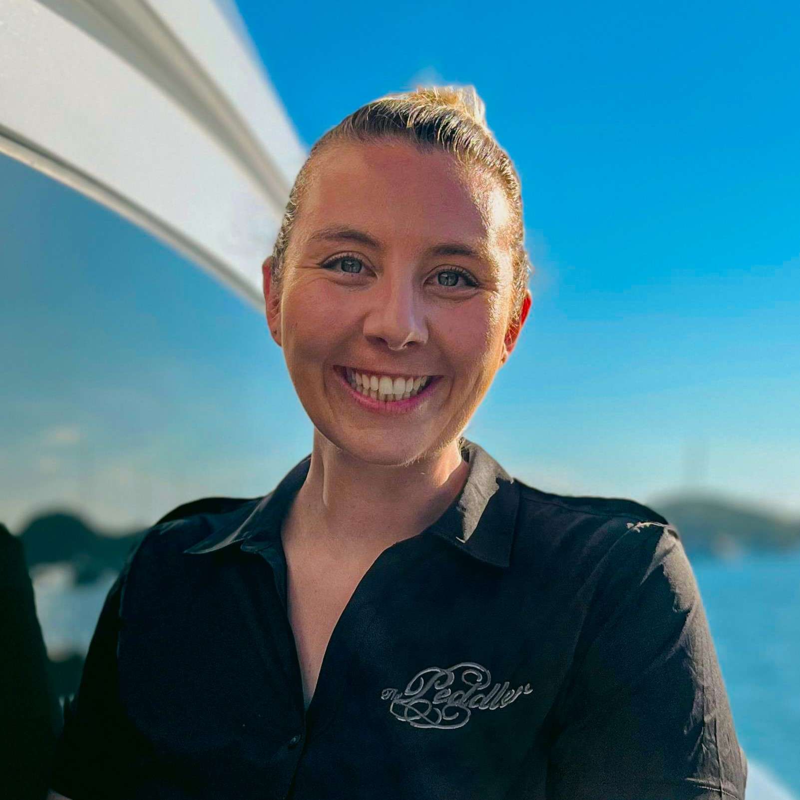 Stewardess Mariah Smallwood brings warmth, creativity and a world of hospitality experience to her role aboard The Peddler. Originally from Hawaii Mariah has built a vibrant career both on land and at sea blending her love for service, art, and adventure into everything she does. Before stepping into the world of yachting, Mariah honed her skills as a server, bartender, and manager in high-end restaurants across the US. Her background in mixology and fine dining translates seamlessly to life onboard where she crafts memorable guest experiences with her signature cocktails, friendly personality and eye for detail. Adding a touch of flair, Mariah also spent years performing and teaching aerial circus acrobatics and fire dancing — talents that bring energy, creativity, and a spark of entertainment to every charter. Mariah is known for her positive energy and sociable nature. She thrives in close-knit crew settings and takes pride in ensuring guests feel completely at ease. Whether she’s mixing the perfect drink, creating a beautiful table setting, or sharing stories from her travels, Mariah’s enthusiasm and professionalism makes every trip aboard The Peddler a truly memorable experience.