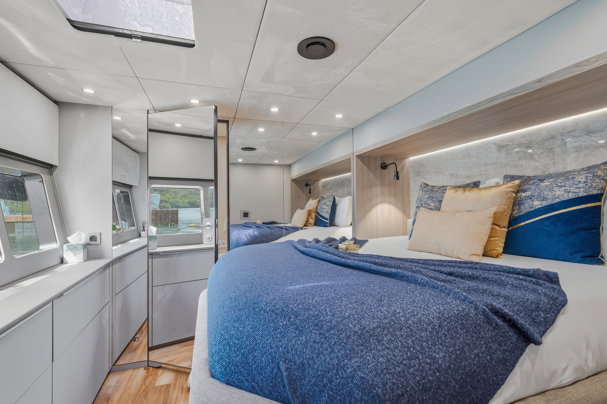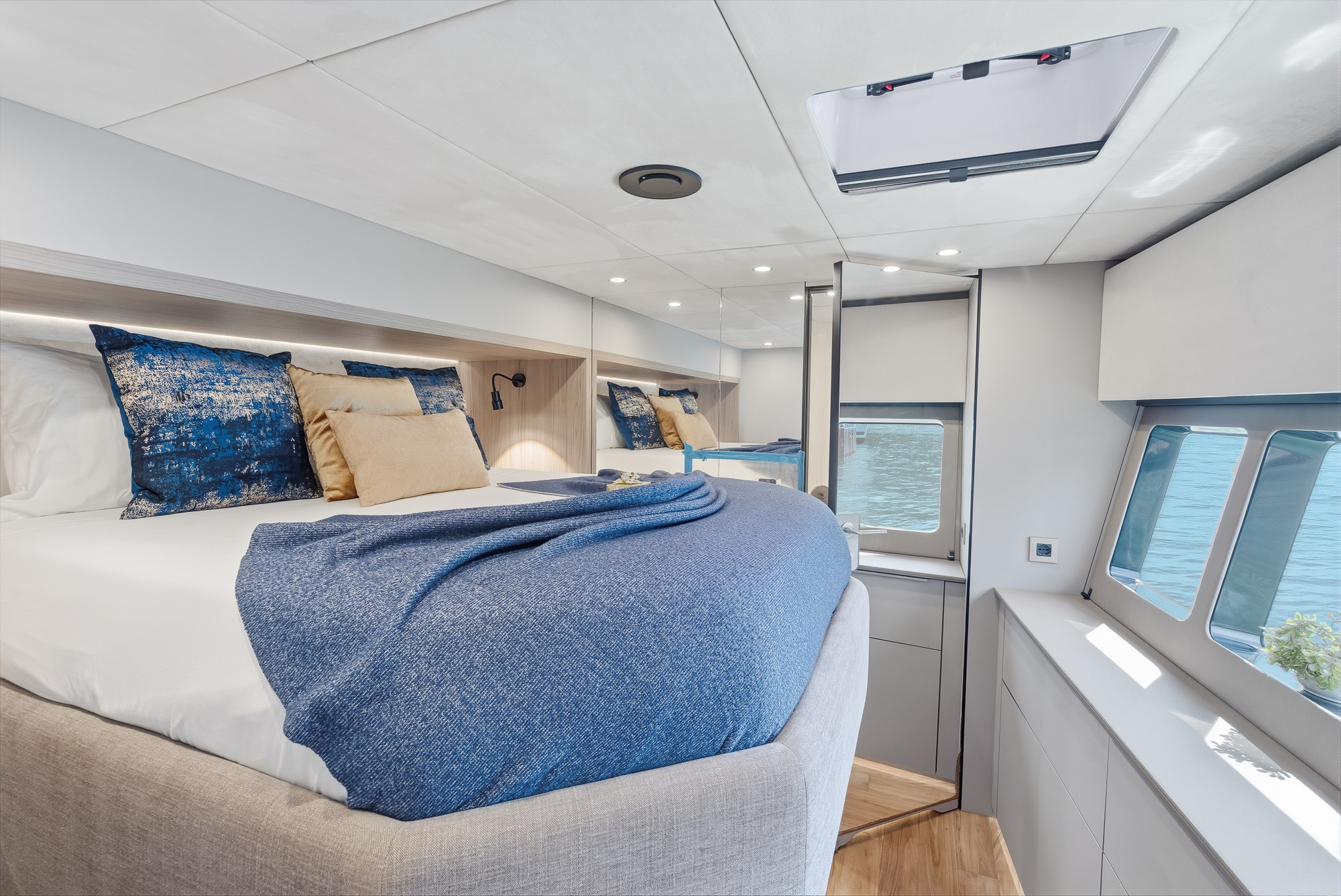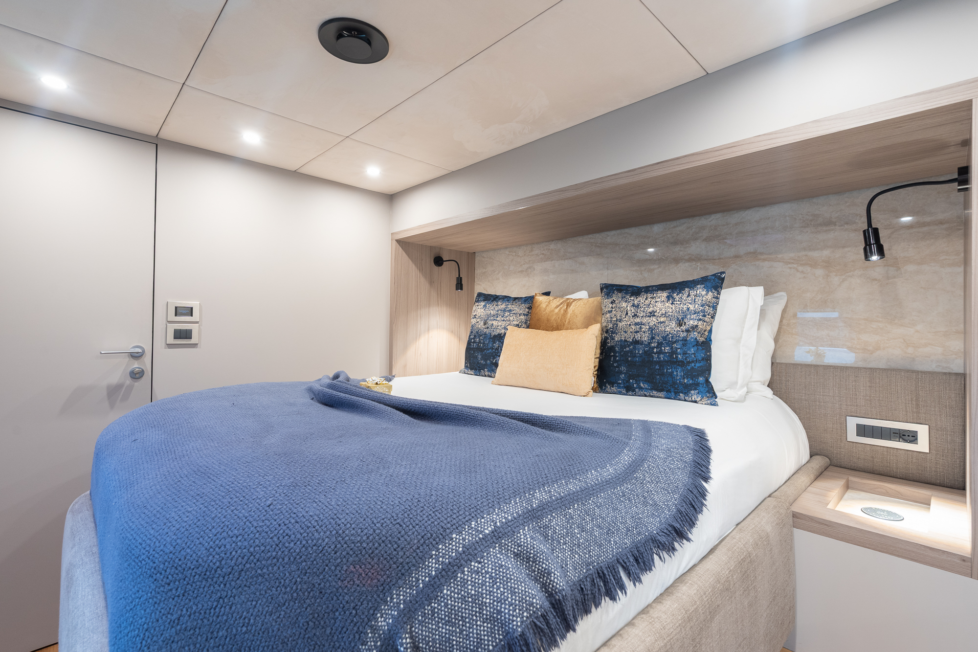 The Moon 6ty catamaran is a fusion of unparalleled luxury, precise technology, and elegance. The MOON 6ty is a premium yacht that combines exceptional sailing performance with a modern, sophisticated design, offering the choice between a sailing and motor version.